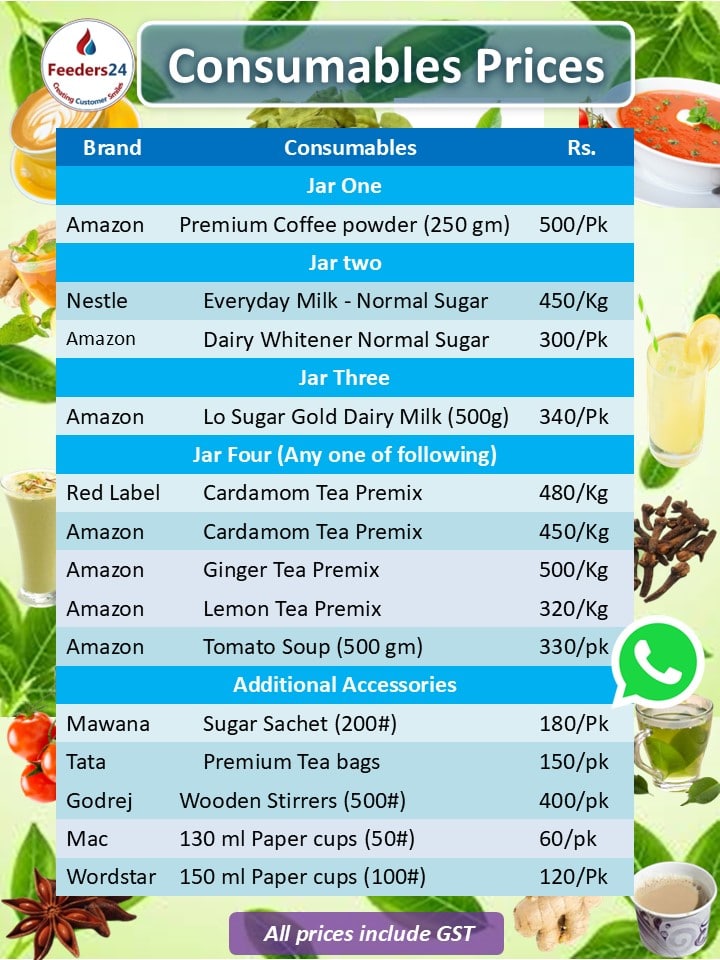 We are just a call/message away from you. To order premixes & Vending machines, contact us at 7000-13-83-43 or write to us at info@feeders24.com. We supply to more than 400 corporations in the entire Delhi NCR. Also, we ship the cartons of premixes to cities outside Delhi NCR.